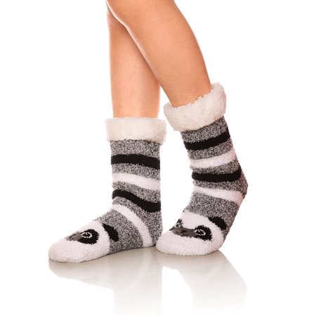 Womens Super Soft Cute Cartoon Animal Fuzzy Cozy Non Slip Winter Slipper Socks